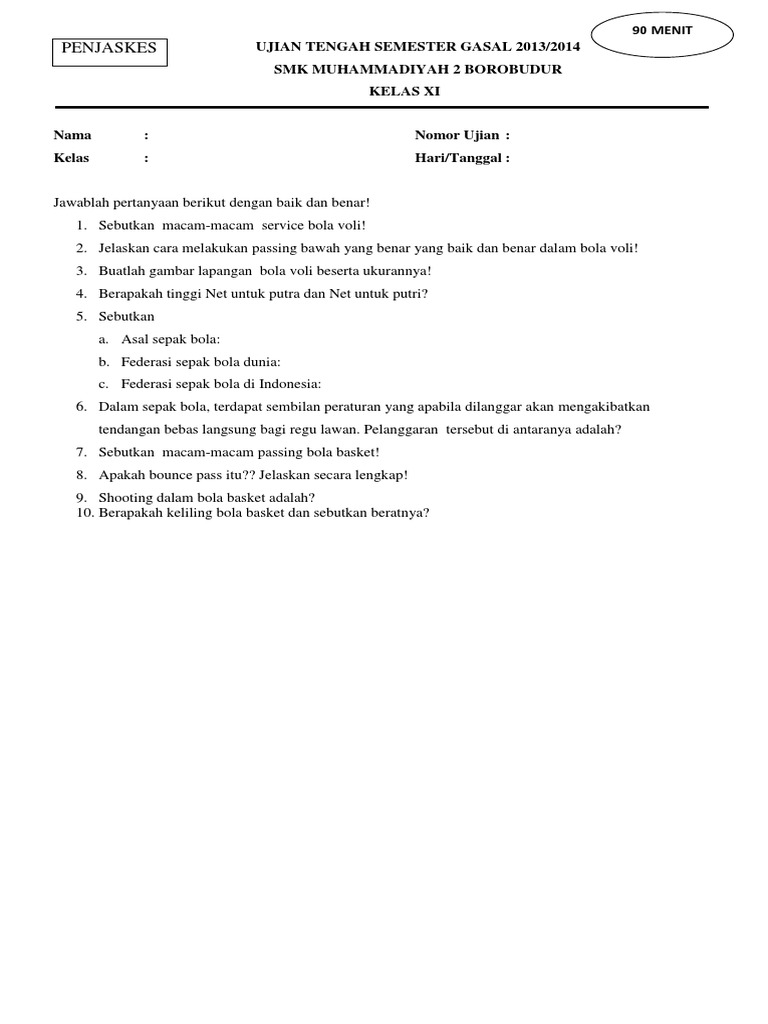 Artikel ini hadir untuk membantu para siswa SMK kelas XI dalam mempersiapkan diri menghadapi ujian Penjas Orkes semester 2. Kami akan menyajikan kumpulan contoh soal yang mencakup berbagai topik esensial, disertai dengan pembahasan mendalam yang akan memperjelas konsep dan strategi menjawab. Dengan pemahaman yang komprehensif, siswa diharapkan tidak hanya mampu menjawab soal ujian, tetapi juga menginternalisasi nilai-nilai penting dari Penjas Orkes untuk kehidupan sehari-hari.
