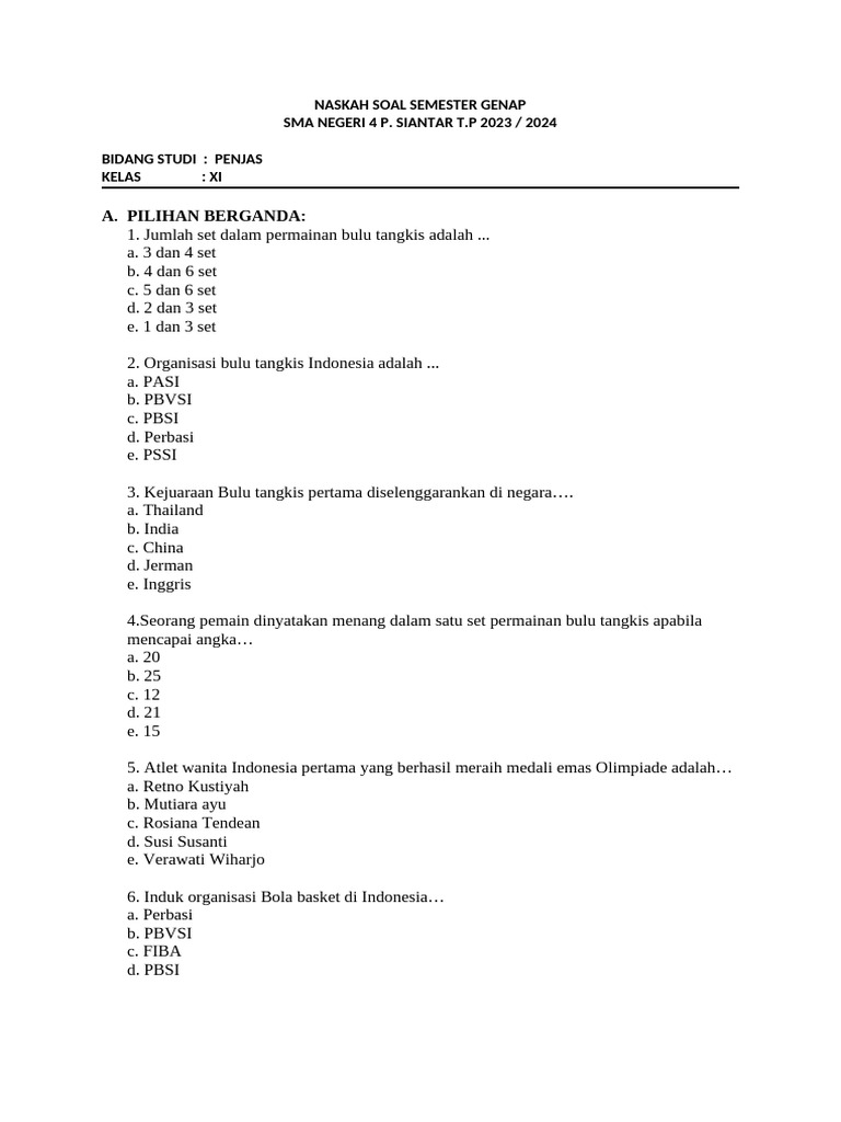 Bagi siswa kelas 11, semester 2 seringkali menjadi periode krusial untuk mempersiapkan diri menghadapi ujian akhir sekolah dan memantapkan pemahaman materi. Oleh karena itu, memiliki contoh soal yang relevan dengan K13 revisi 2017 beserta pembahasannya menjadi sumber belajar yang sangat berharga. Artikel ini akan menyajikan berbagai contoh soal Penjas kelas 11 semester 2 K13 revisi 2017, mencakup berbagai cabang olahraga dan topik kesehatan, lengkap dengan penjelasan mendalam untuk membantu siswa menguasai materi.